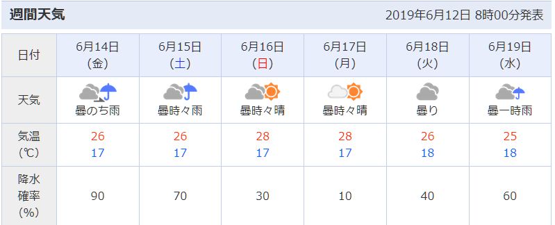 ちょっと以前の予報よりも雨が早くなっているようで、金、土が雨、日曜日は曇り時々晴れ