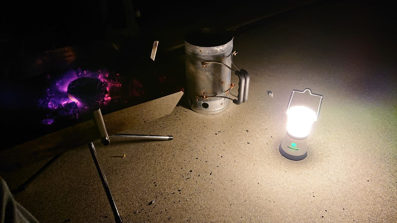 1時間半ほど火を楽しみ撤収、撤収と言っても椅子を袋に入れて、ナイフとランタンを片付けた