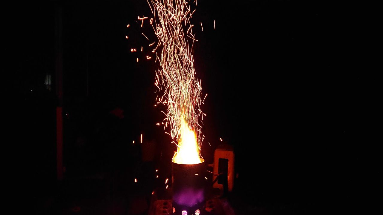 あまりにも爆ぜるのが酷くて斜め向かいのお宅からもこの火の粉が見えたそうでして