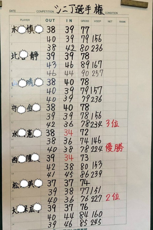 今日が最終日であるが、けんちゃんトップで、2位に大御所が控えており