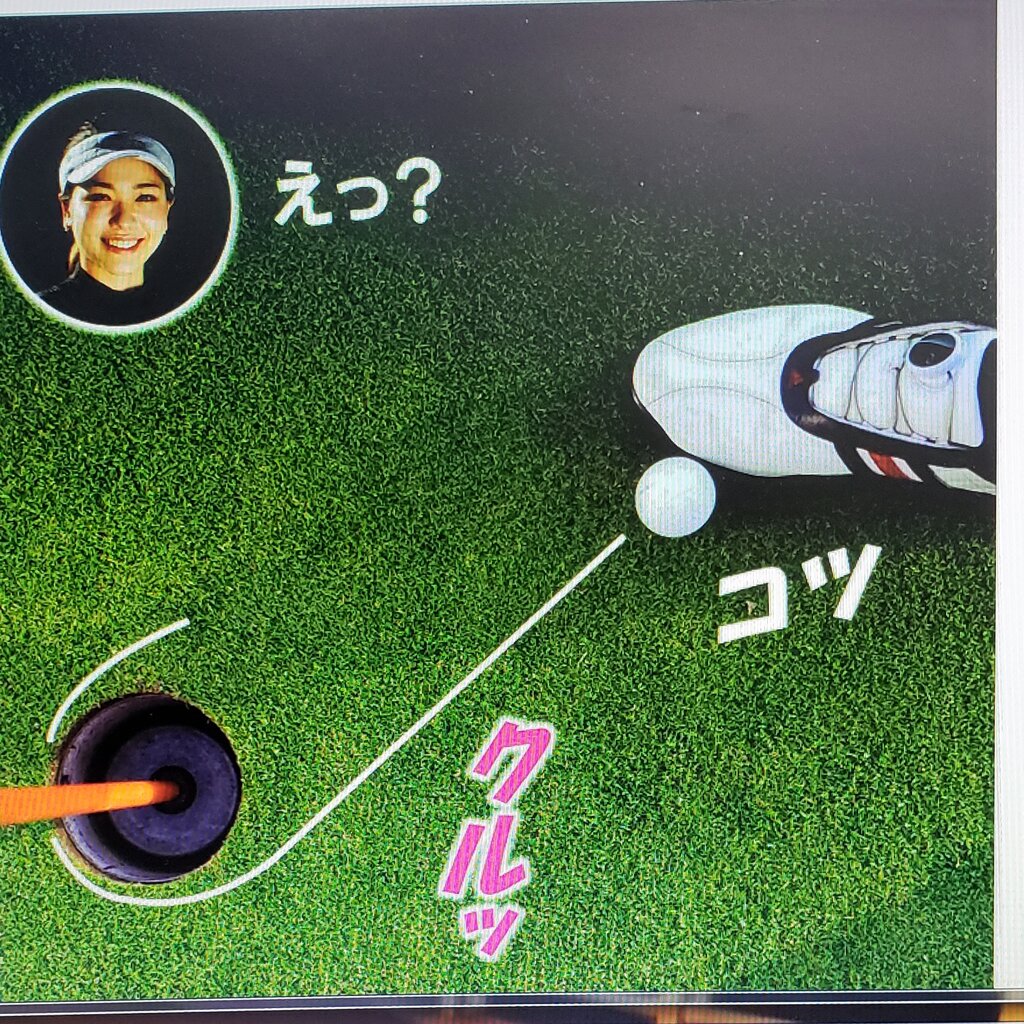 短いパットを「お先」で打ってけども、ピン竿に当たってしまい