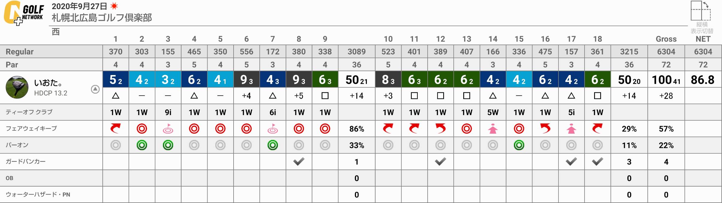 8番の9打はグリーン周りのバンカーから上手く出ずグリーンを行ったり来たりでした…当日はパットも酷く3パット多発で計41パットと言うのも100叩きの要因ですね…(^_^;) 後半はそれ程酷くなかったですがダボが多かったです。