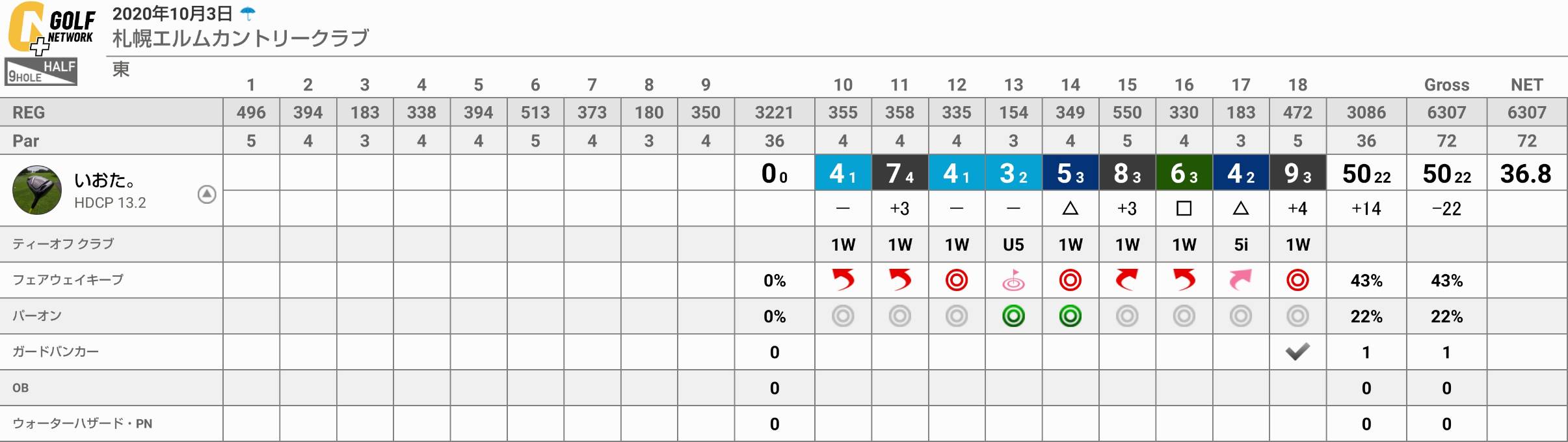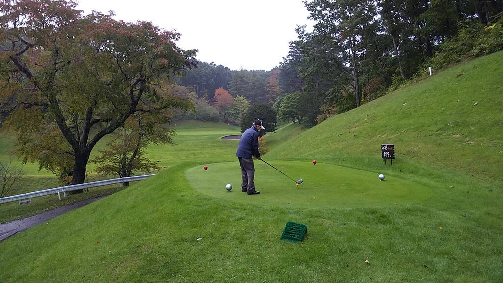【いおた。memo】今回は雨天で余裕が無かったのもあり、ドライバーやUTは元の横振りに戻した。そのお陰でウッド類の方向性は良く、UTは硬い地面で転がって飛距離も出ていた。父のシニアティーは北広島より距離があり、いつもより大変だったようだ。