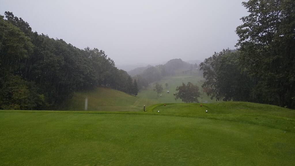 ホームの北広島と違ってエルムは地面が硬く芝が薄いのでセカンドのUTは打ち易く、大雨の中でもパーが取れたホールが有りました。しかし水捌けは北広島と比べると余り良くないようでフェアウェイやグリーンに水溜まりも見られました。