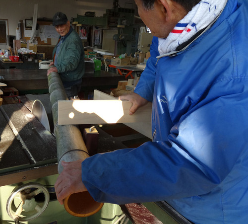 先端の斜めカットは、近くの木型屋さんにお願い・・これが一番難しいのだが