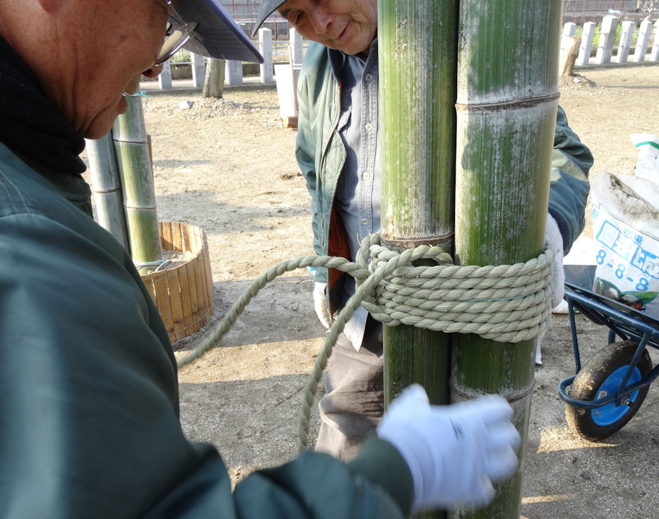 縄の縛り方も中々手ごわい、ベテランに聞きながらやってみるが、今年も断念