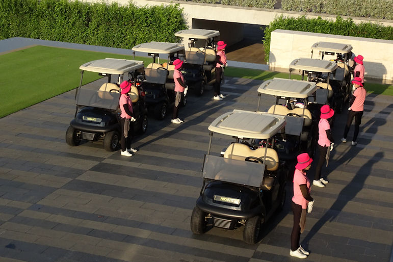 スタート前にはキャディーさんが、整列して迎えてくれる