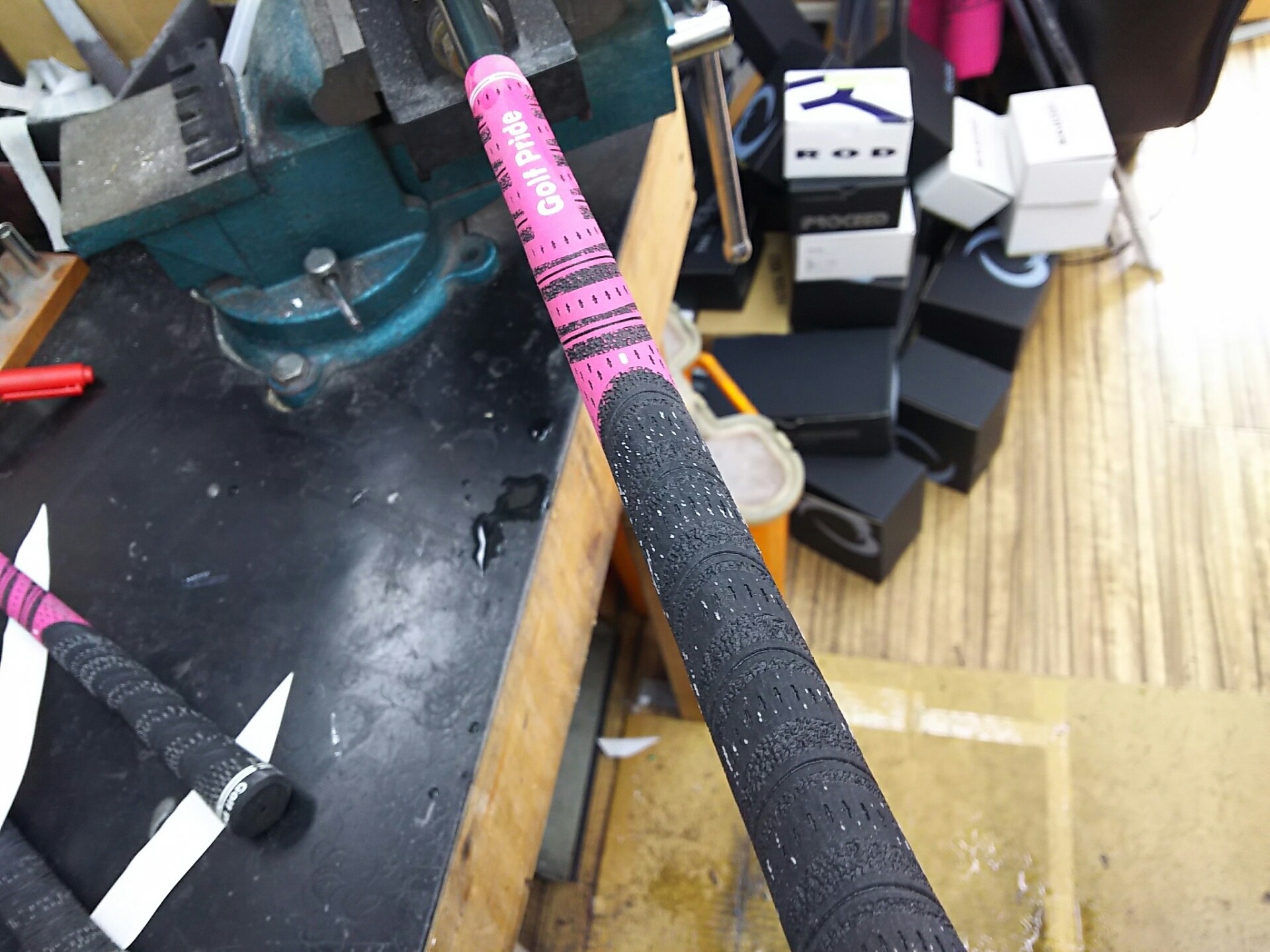 まぁ毎日のようにグリップを挿している僕らにとっては溶剤が水に変わるだけなので作業的には変わりませんね。ただ、テープの幅が広いのと剥離紙がパリッとしすぎていて巻きながら剥がれちゃうのと螺旋に巻きにくい。(でも細いのもあるのかな?)どうしても捩れちゃうんですよね。