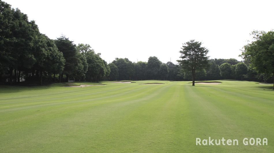 レイアップ気味に左に向かって打つとバンカー群のちょうど真ん中の狭いフェァウェーに