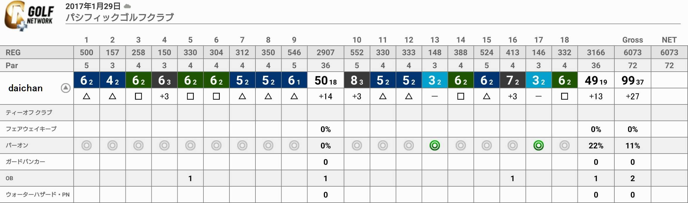 パシフィックゴルフクラブであります、それがこの1打で100切達成な訳です