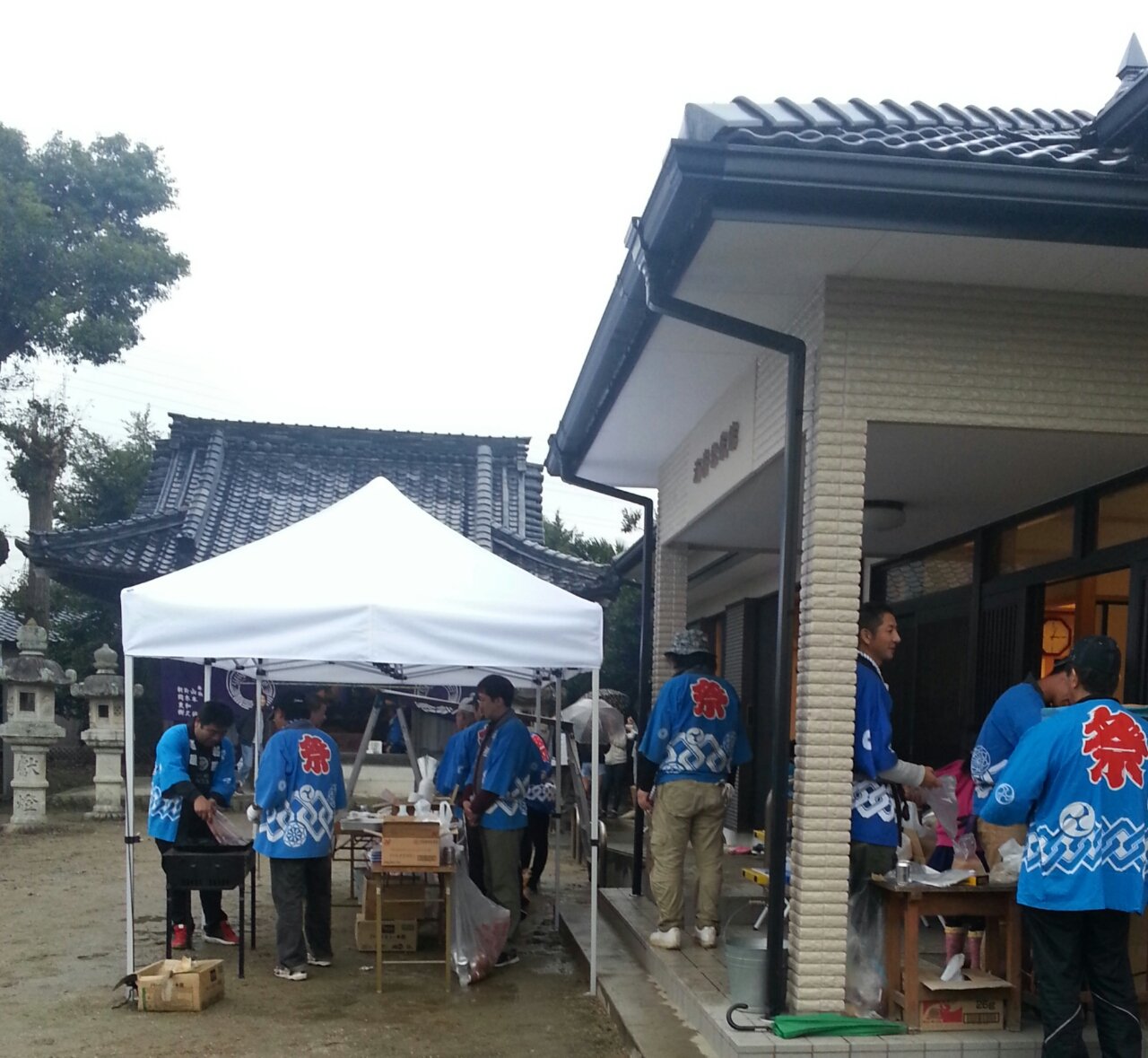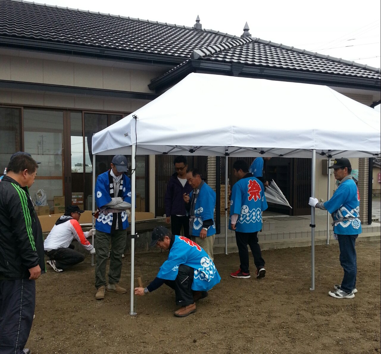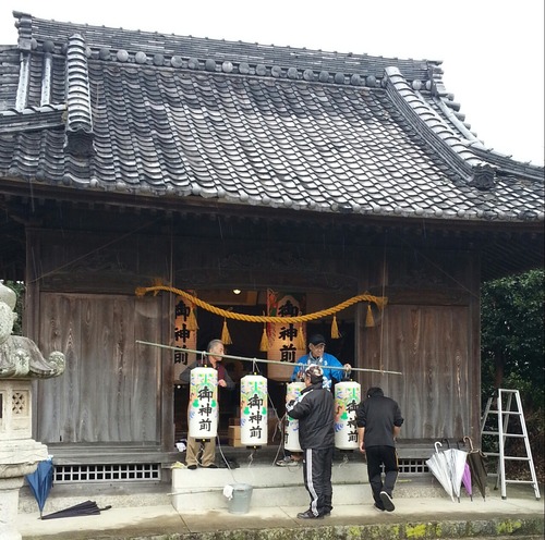 祭りといえば「のぼり立て」は、全戸での総力戦で行うのであるが、この雨で