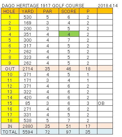 前回の110から一気に13打の成長であります! やっと海外ゴルフでまともなゴルフをしたような
