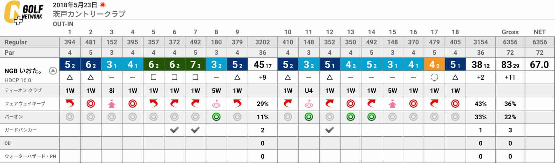 ば前半の45が響いて83とそこまで良い結果