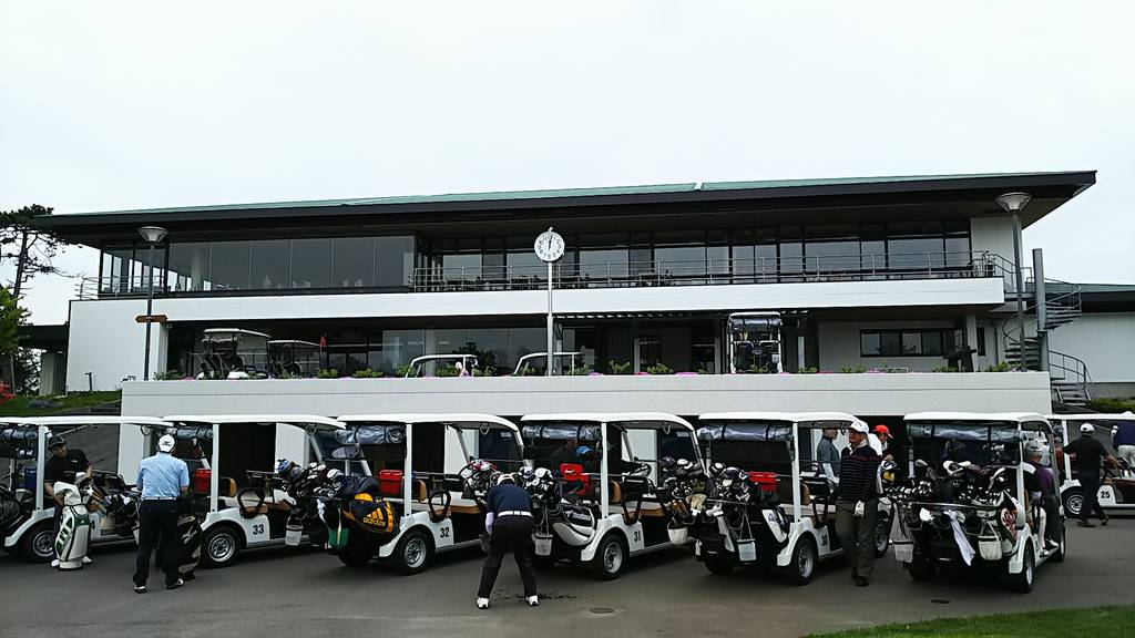 クラブハウス前にズラリと並んだ乗用カート