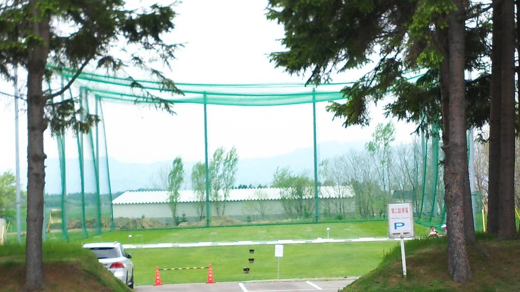 駐車場の奥のネットに囲まれた練習場