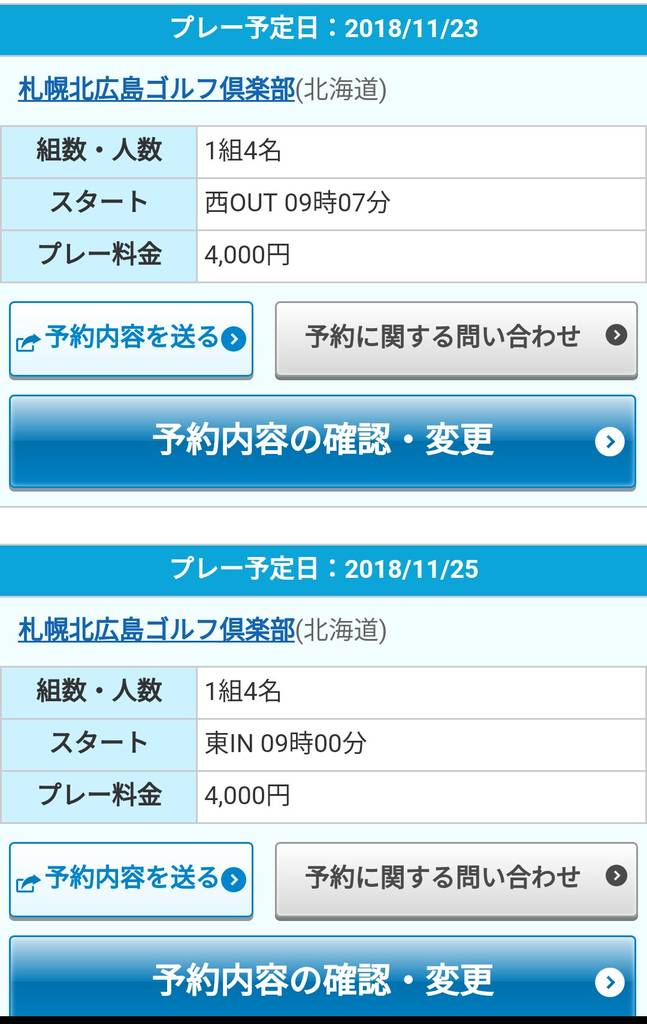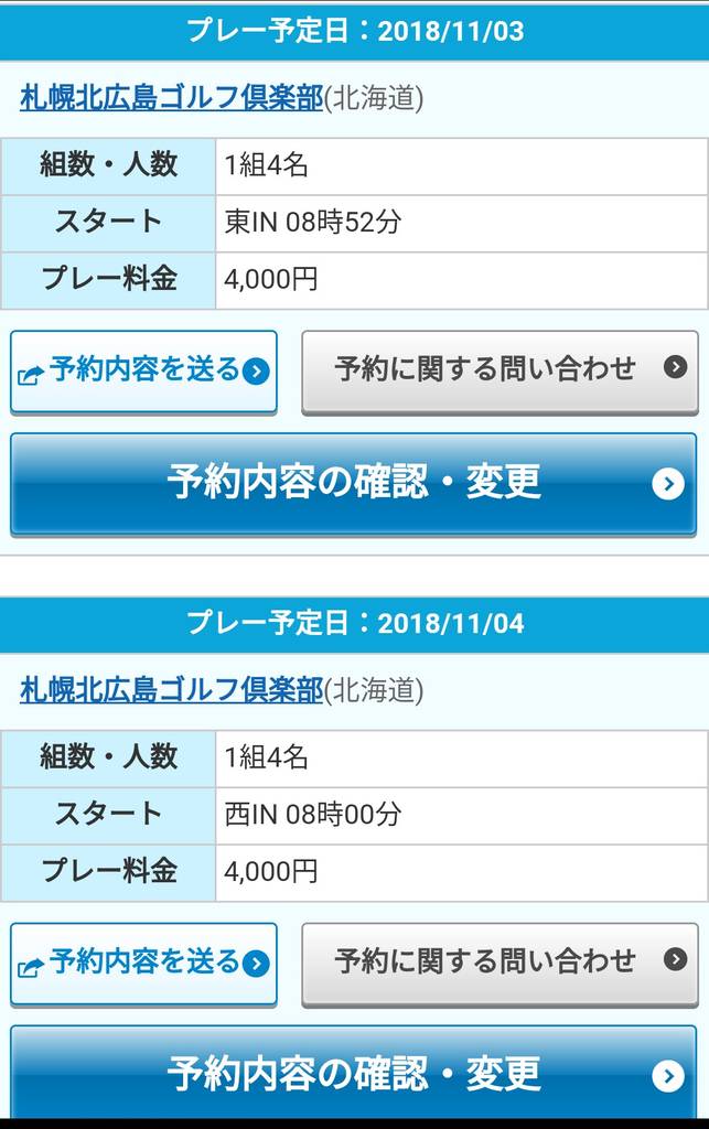 とりあえず北広島の東と西コースで11月の(日)と祝日のなるべく早い時間を予約しておきました。早いと言っても8:00以降で、必ずハーフ休憩が入るようです。ビジターのプレー料金は多少は安いみたいですが、11月なんだからもう少し安くして欲しいもんですね。この辺、北広島はシビアです…(^_^;)