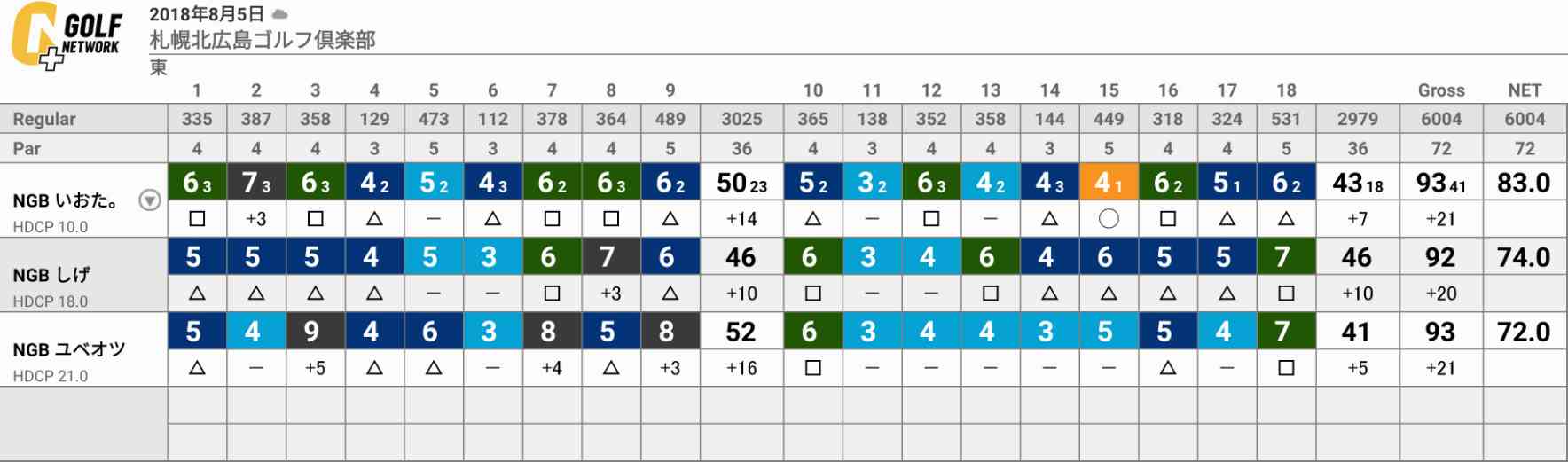 NGBハンデをかけたNETスコアではユベオツさんが断トツでしたね。NGB春コンペも東コースでしたが、もしユベオツさんが参加されていたら優勝だったかも知れませんね。