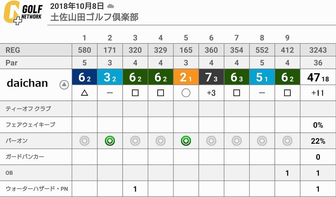 まぁ久しぶりのバーディーも取れましたし一応パーも2個拾ってますが、何故かミドルが全て