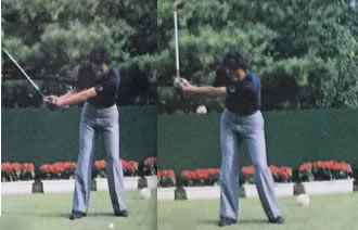 青木プロは1978年頃にスイングが完成したということで、その後は世界で活躍しましたが、1983年と1971年を比べると、セットアップでのグリップ位置やスタンス幅、左肘の向きなどが変化していました。