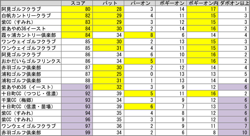 季節や天気も違えば、コースやその難易度もまちまちですが、それらが極端にスコアに影響したものを除けばハッキリと傾向が表れてきました。