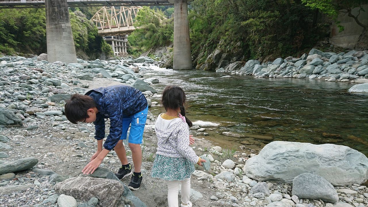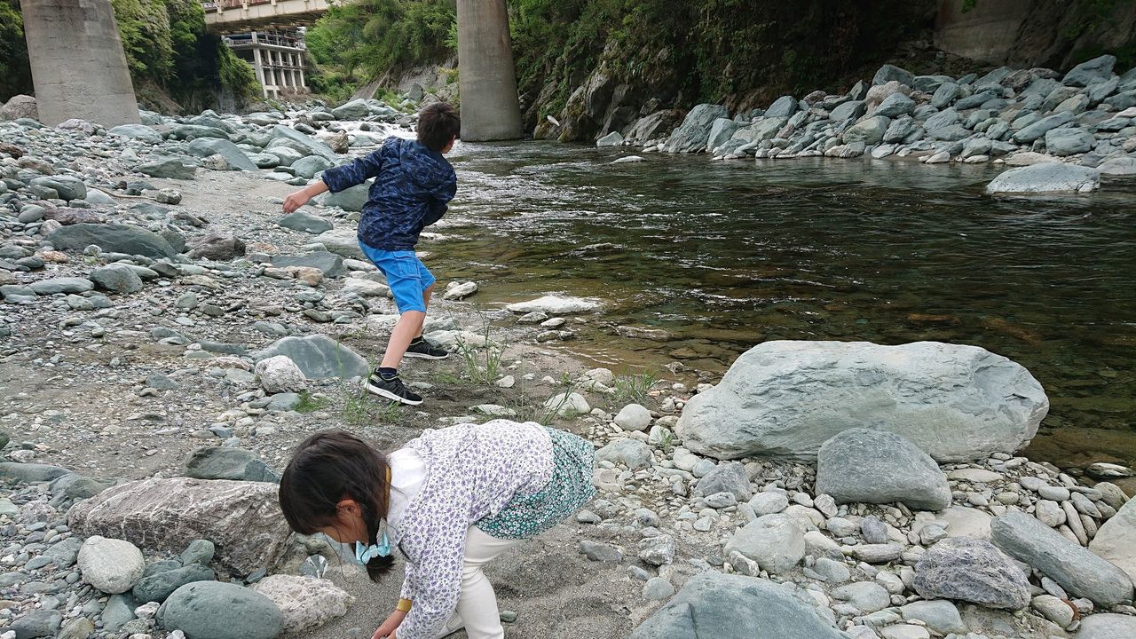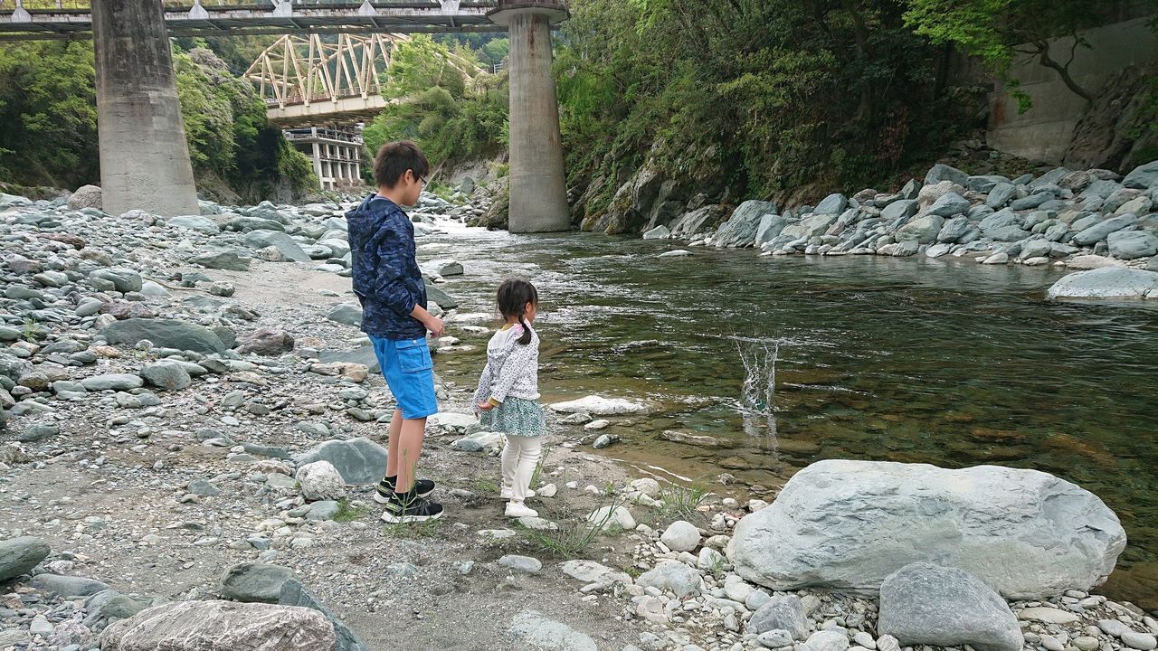 長男が川原で遊びたいというので、子供らを連れて実家のすぐ近くの吉野川に