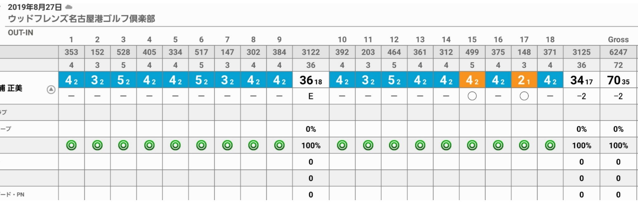 スコアはイン34・アウト36 トータル70点の2アンダー、目標スコアには