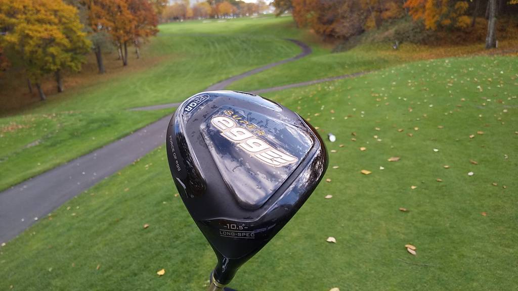 途中やなぎさんの新たな飛びのドライバー『PRGRスーパーegg』をお借りしました。46.75インチと言う超長尺の割には振りやすく、一応上手く当たりましたがロースピンのディープフェース設計で私だとドロップ気味で飛びませんでした。eggも意外と簡単ではないですね。