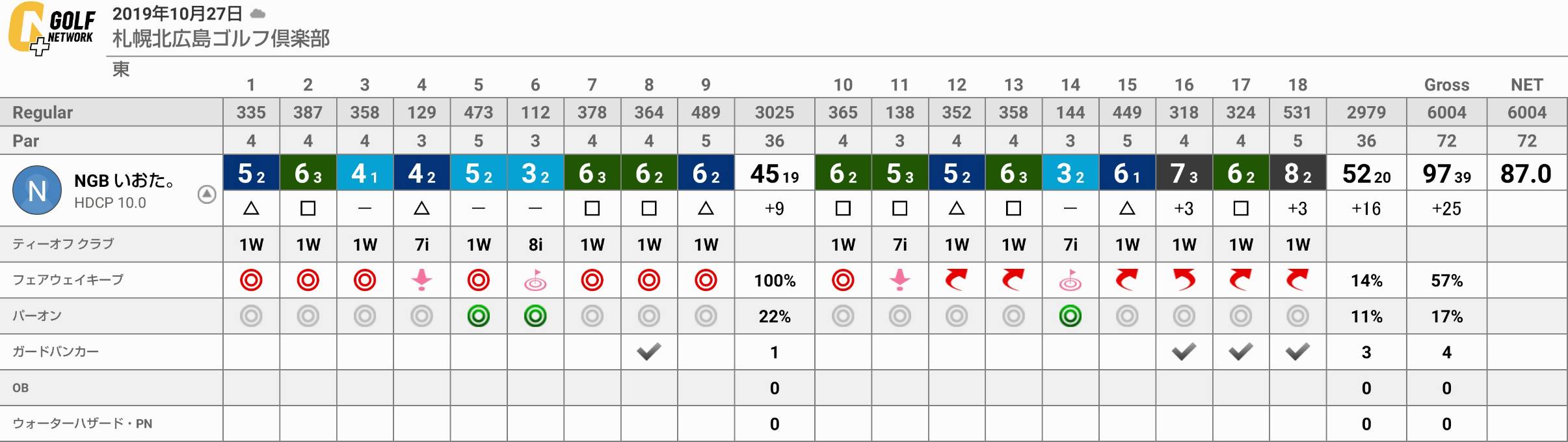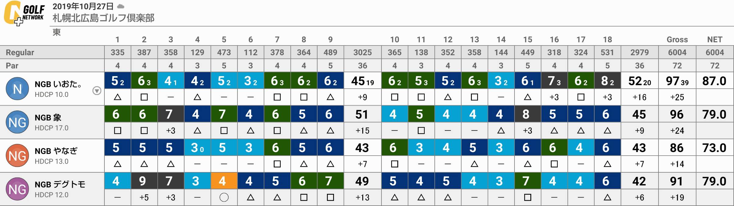 昨日(日)はホームコース札幌北広島で久々にお会いするNGBメンバーの方々と御一緒して来ました。象さんは今季二度目で8月末の西コース以来、やなぎさんとデグトモさんは昨年以来でしょうか。皆さん確か御近所にお住まいだと思いましたが普段は中々会う事は有りません。