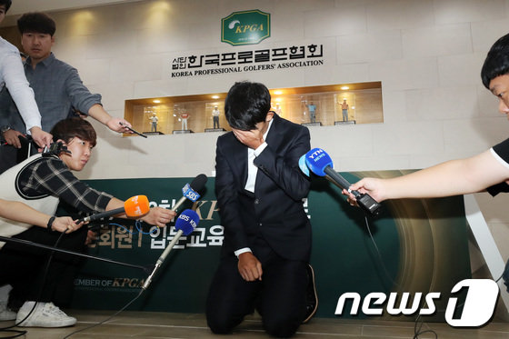 韓国メディアは、キムがテレビカメラの前で土下座して謝罪する姿も