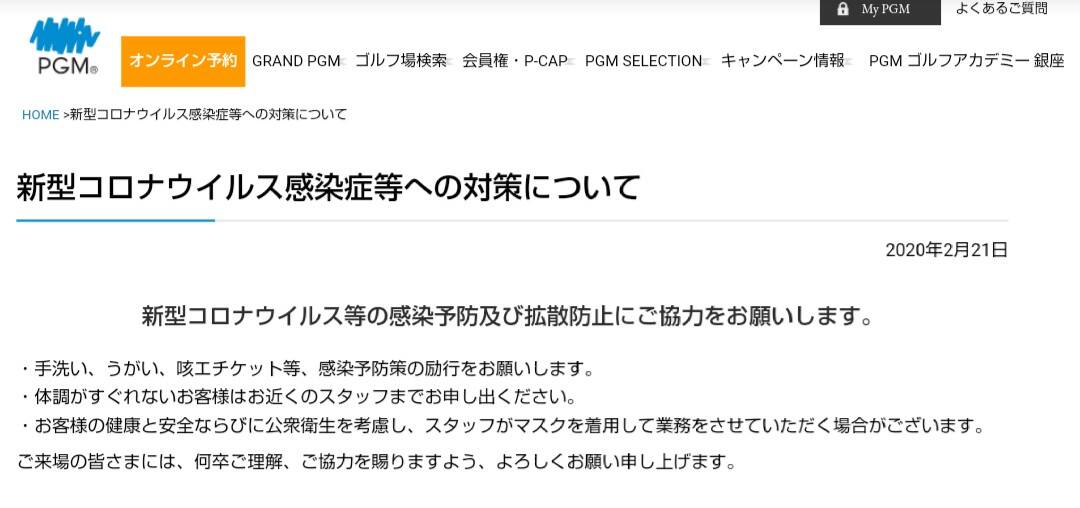 さて、今年もお世話になる我がホームコース『札幌北広島ゴルフ倶楽部』ですが、PGMのホームページには次のような告知がありました。ゴルフ場ではラウンド中は余り問題は無さそうですが、クラブハウスでは風呂場、レストランなんかは利用しにくいですね。
