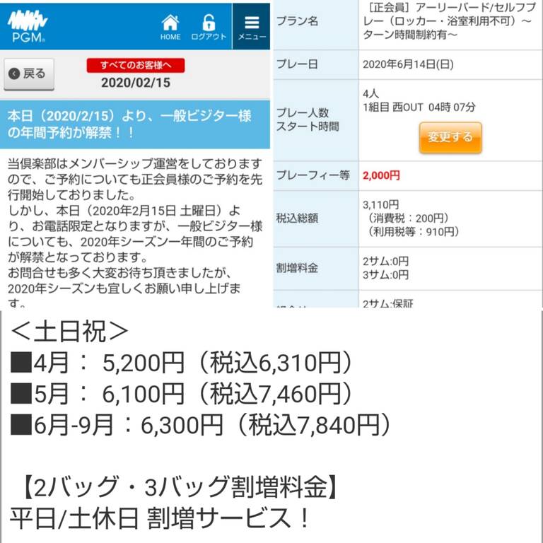 札幌北広島では会員限定で既に今年11月までのラウンド予約が可能となり、GW辺りから9月半ばまでの早朝枠を押さえる事が出来ました。今年は会員料金は特に値上げしてないようですが、週末早朝ビジター料金が最大7,840円って高過ぎませんか?他のPGM系列もこんな料金設定なのですかね…