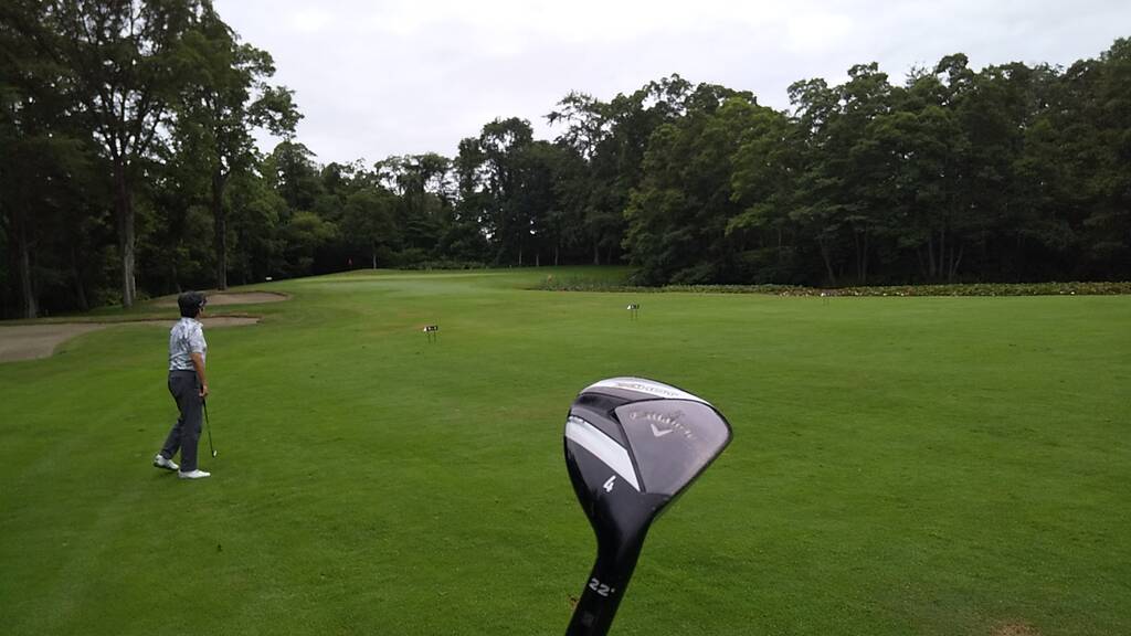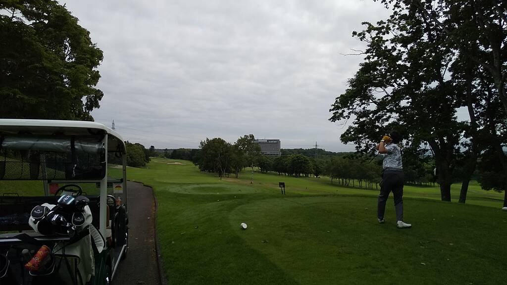 当日の朝は終始曇り空で時折風が吹き、半袖だと肌寒く感じるくらいでした。しかしこういう時は暑さにバテる事なく良いプレーが出来ますね。私は前半43と80台を目指せる好調振り♪