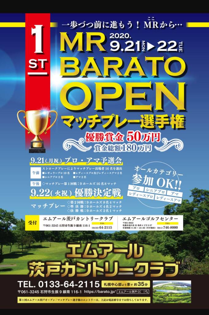 その茨戸では9月末にプロアマ合同マッチプレーが開催されるようです。賞金も出るようで (アマは賞品?) 今年は道内でのツアー大会が少ない中、熱い盛り上がりを見せるのではないでしょうか?ヒカルさん辺り参加されてみてはいかがですか?!