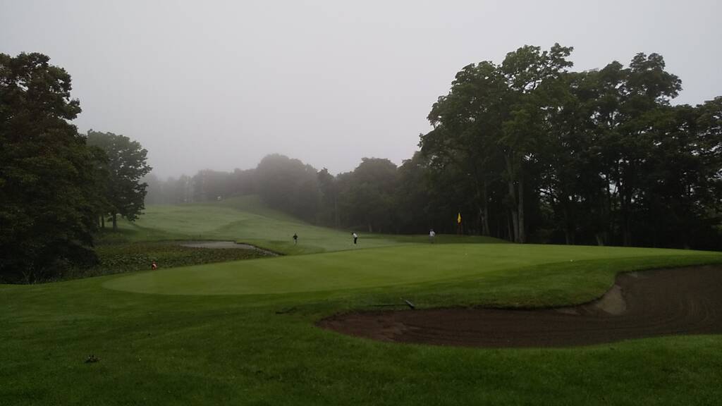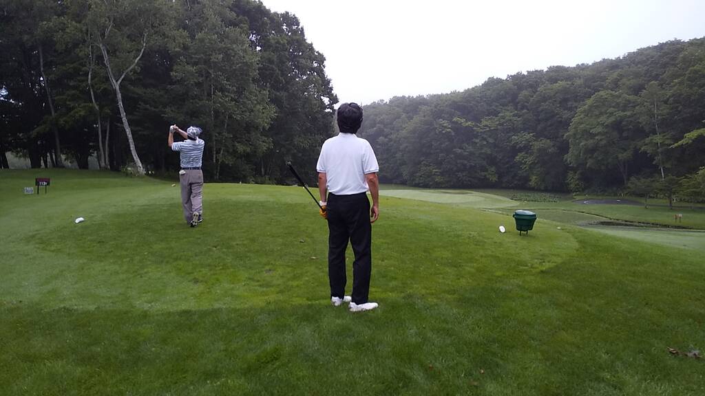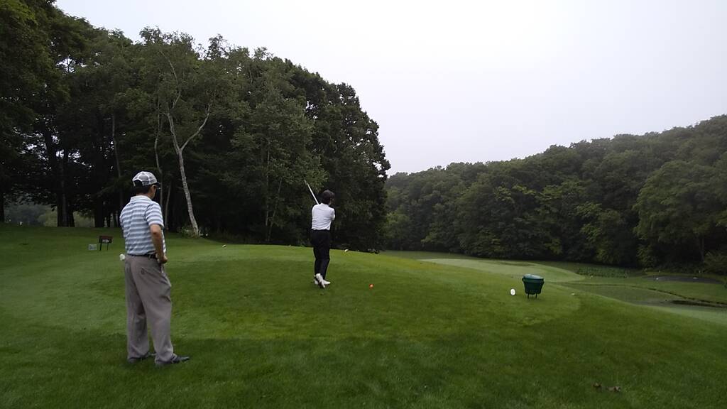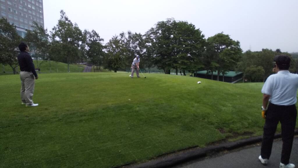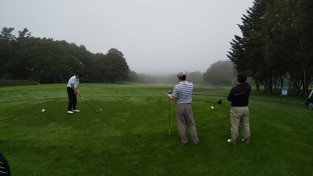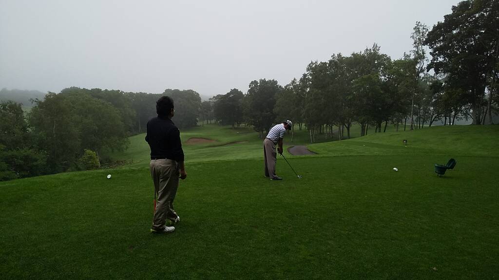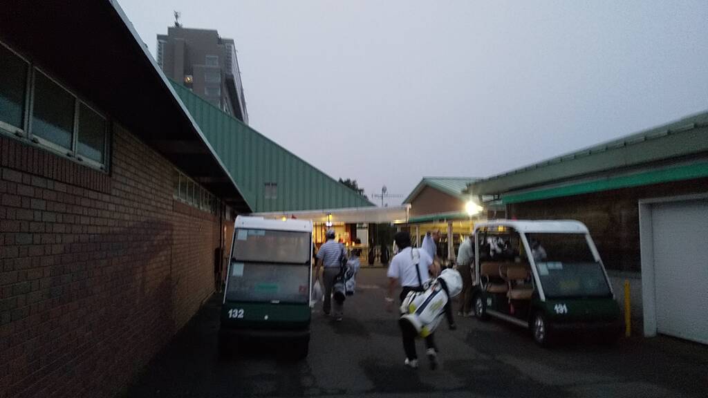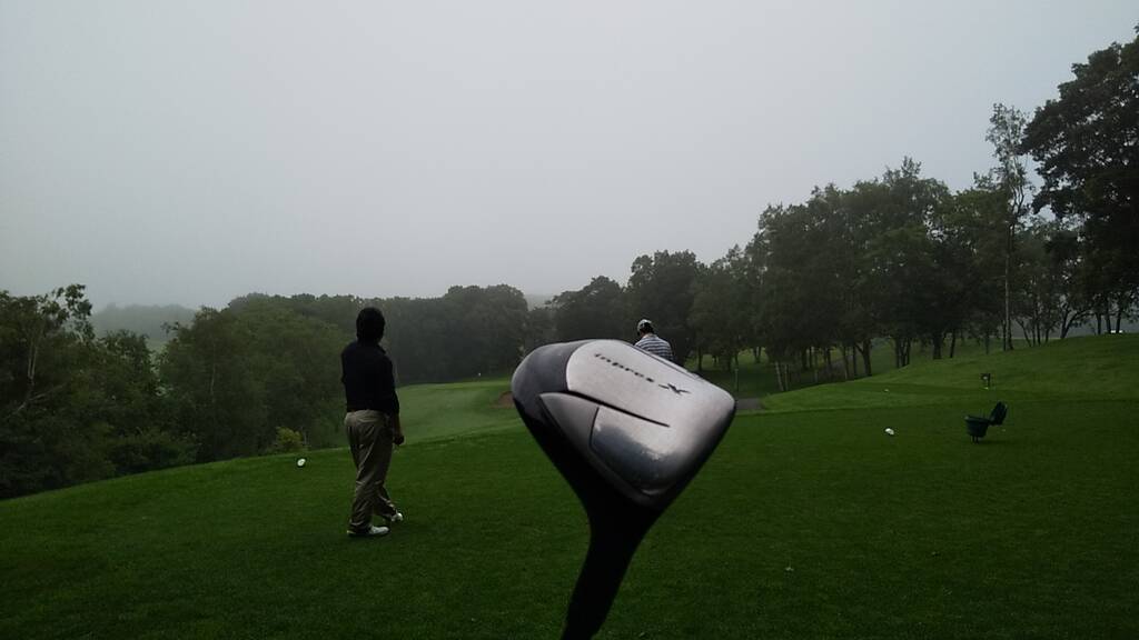 当日は4時半スタートで早朝客は少な目、天気は曇りで無風でしたがとても涼しい朝でした。雨予報が出ていましたが8時過ぎにはプレーを終え、帰り際に少し降っていたようです。しかし朝露で足元はびしょ濡れ、時折霧が立ち込め、前半は露でグリーンが重くて大変でした。