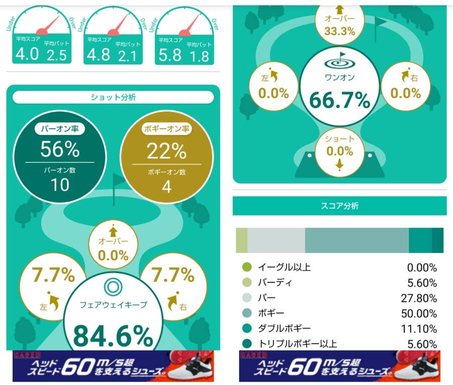 私も負けじとドライバーで叩いたせいか、帰宅後に左肘の痛みが出る程でしたが飛距離はまぁまぁでスコアも悪くない結果となりました。パット数が多いのはグリーン脇からのパター打ちも含めたからで、2ラウンド連続の80台には満足しました。