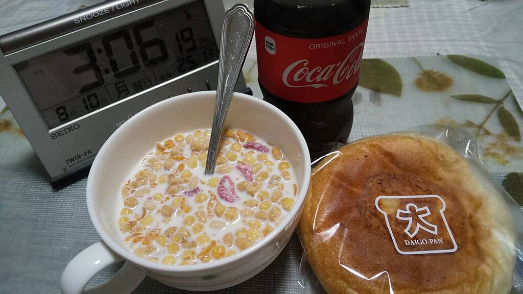 3時の早朝飯はフレークとカレーパン