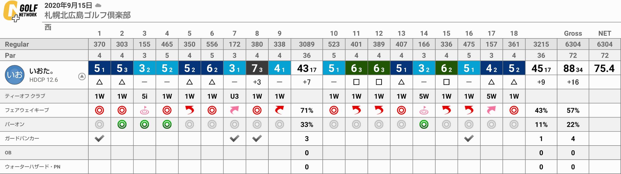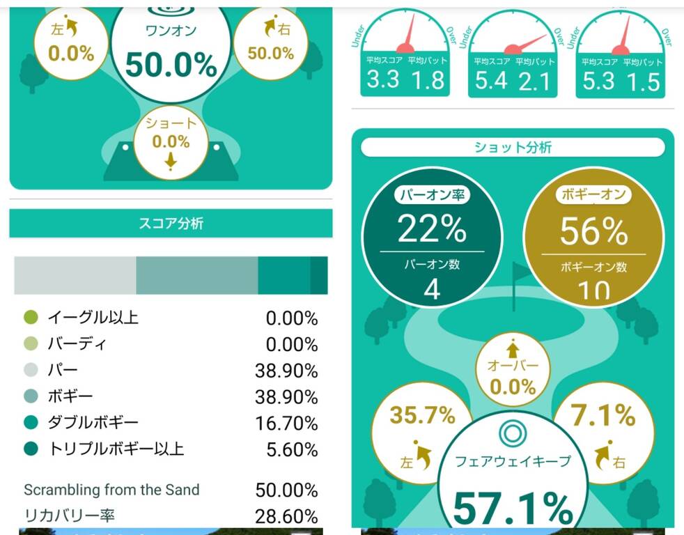 それでも前半43、後半45の88とし、3パットが4回あった割にはまぁまぁの結果となりました。par3とpar5で各3回パーセーブしたのが大きいですね。今回は52度のAWでの転がしアプローチに何度か救われました。