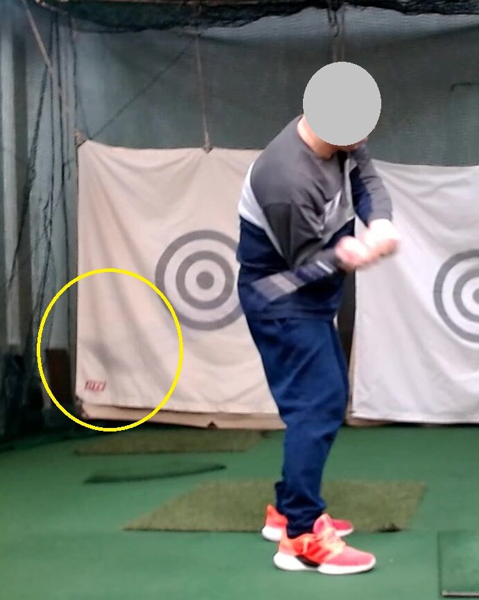 ボールと正対するトコロで 我慢してしまう というコトです。